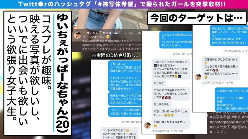 | 出演女優 | ゆいちぇ☆がっぱーな/20歳/映える写真が欲しいし出会いも欲しい!!欲張り清純系ビッチ!? |