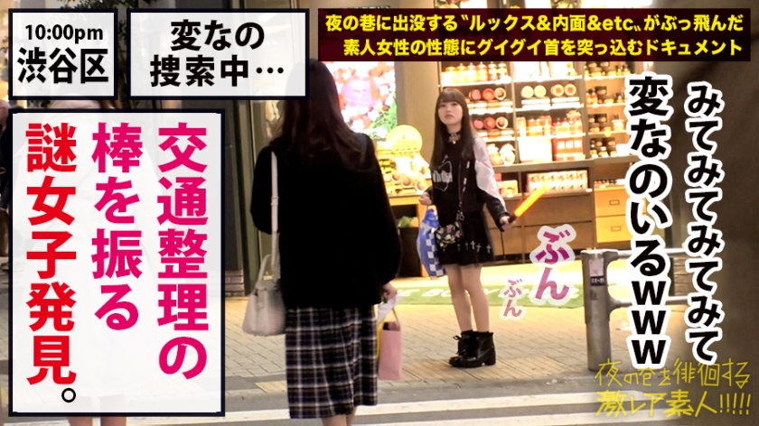 巷に溢れる個性的すぎる素人の実態を暴くシリーズ第一弾。渋谷で出会ったのは、夜道で誘導灯を振り回し交通整理に励む風変わりな少女・りかさんでした。彼女の不可解な行動に同行し、ゲームセンターでUFOキャッチャーに苦戦する姿を追った後、一行は彼女の自宅へと向かいます。到着した室内は、可憐な容姿からは想像できないほどのゴミが散乱する惨状。彼女は「部屋が汚いのは天才の証」という持論のもと、理想の自分に近づくために散らかしていると語ります。リフレ時代の衣装でのサービス再現までは微笑ましい展開でしたが、男優のトイレに同行し排尿を凝視するという驚きの行動へ。その刺激で自らも発情したりかさんは、下着を濡らして快楽を求めます。電マによる攻めや、口内を弄られる刺激に感度は最高潮へ。逞しい男根に貫かれ、激しく腰を振る彼女の恍惚とした表情は、まさに圧巻のドキュメンタリー映像となっています。