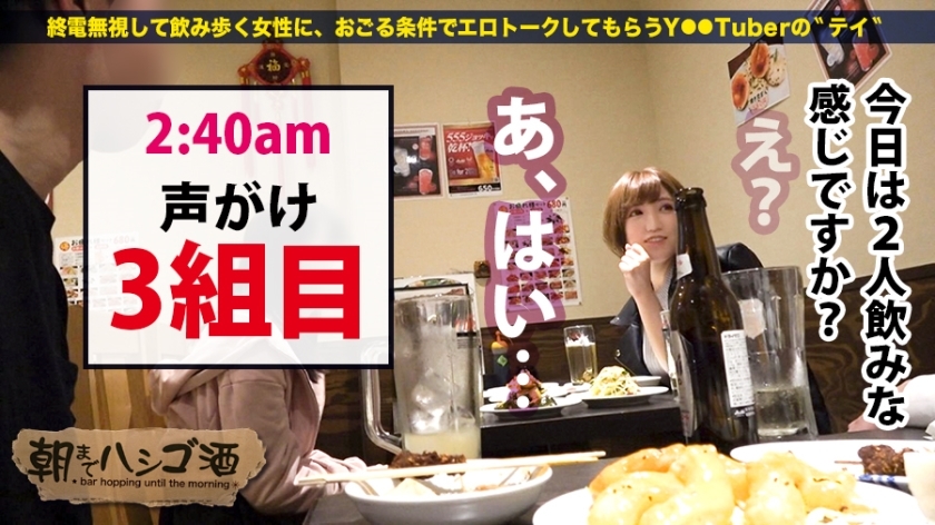 本企画は、終電後の居酒屋で飲み耽る女性に密着し、彼女たちの赤裸々な人間模様を紐解きながら、最終的にはホテルへの誘い出しを目指すリアルドキュメントです。舞台は錦糸町。全額奢りを条件に交渉を開始すると、2組目でターゲットのゆのさん、友人のりこさんと合流することに成功しました。大学のダンスサークル仲間である二人は、今どきの大学生らしい奔放な恋愛観を披露。酒が進み、頬を赤らめるゆのさんに踏み込んだ質問を投げかけると、経験人数は10名、交際人数は6名と、ワンナイトやセフレを含む複雑な女性遍歴が明らかになります。二軒目ではナイトプールの写真や官能的なゲームで親睦を深め、ノリの良い彼女を軽やかにホテルへ。端正な顔立ちに豊かな胸を持つ彼女は、「滅茶苦茶にされるのが好き」と語った通り、早朝の光が差し込む中で何度も絶頂を迎え、腰を震わせて快楽に溺れていきました。