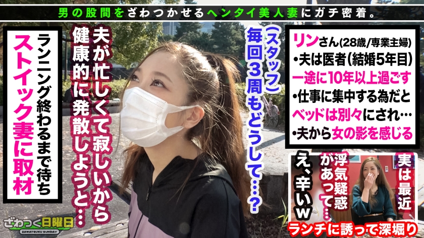 「刺激が欲しい」という主婦たちの本能を解き放つ本企画。今回ターゲットとなったのは、28歳のアスリート妻・リンさんです。取材を装ったアプローチは一度失敗に終わるも、夫の浮気発覚という絶望的な状況が彼女を翻意させます。復讐心と情欲が入り混じる中、密室では過激な情事が展開。入浴中の盗撮に始まり、深い口づけから胸への愛撫、そして秘部への指技や口淫が繰り返されます。対面座位からバックでの中出しまで、鍛え抜かれた肉体で激しく交わった後、後半は衣装を変えて再始動。オイルを用いた滑らかな愛撫、熟練のフェラチオやパイズリを経て、騎乗位や側位、正常位と体位を重ねていきます。最後は豊かな胸元に白濁液を浴びせ、背徳感に苛まれながらも欲望に忠実な一時はフィニッシュを迎えました。