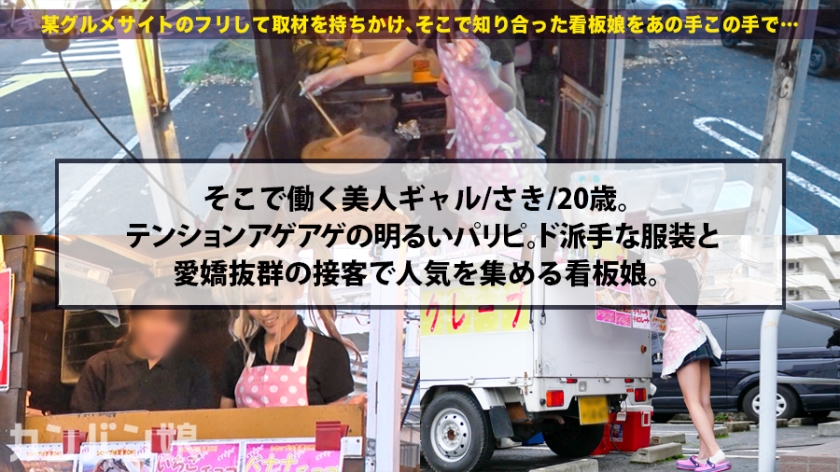 全国各地の店舗を「番組取材」という名目で訪れ、その店を象徴する美女、すなわち「看板娘」にAV出演を交渉するドキュメンタリー企画。今回の舞台は埼玉県八潮市です。駅からほど近い大型施設の駐車場に、一台のキッチンカーが佇んでいます。そこでクレープ店を営むのは、金髪に華やかなネイルを施した、まさに「THE ギャル」といった風貌のさきさん。店長と二人三脚で店を切り盛りする彼女は、自身の調理技術を補うべく、得意のSNSを駆使して集客に励む努力家でもあります。そんな彼女に、経済的なプラスアルファを求める年頃の女性への支援として、副業を提案しました。撮影では、大好きなお酒を嗜み上機嫌になった彼女が、感度豊かな一面を露わにします。愛撫に悶え、愛液を溢れさせながら、情熱的なフェラチオで準備を整えると、本番へ。スレンダーな肢体を激しく反らせて絶頂を繰り返し、奥深くまで突き上げられる衝撃に、最後は力尽きるまで快楽を貪りました。